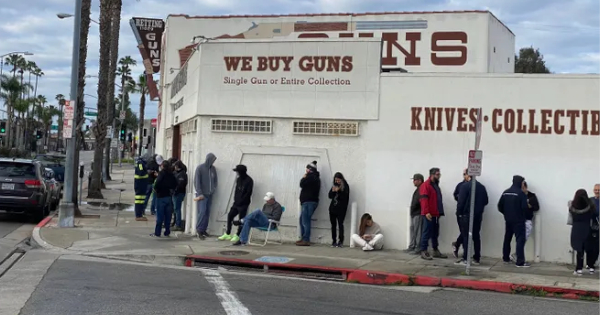 In several states. customers have bee ling up for weeks in front of gun stores to buy weapons and ammunition to protect themselves from possible looting caused by the economic slowdown.